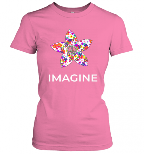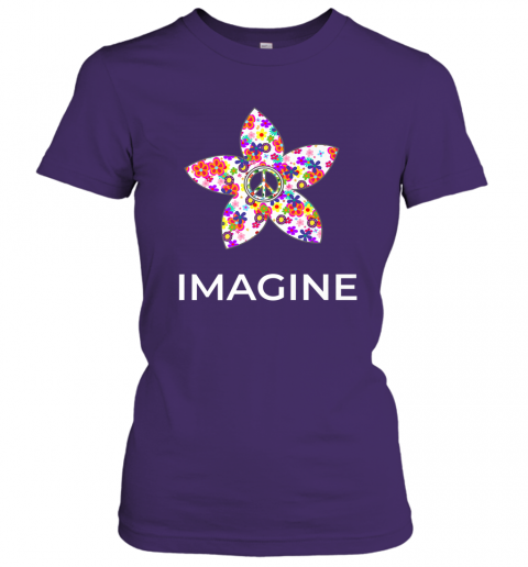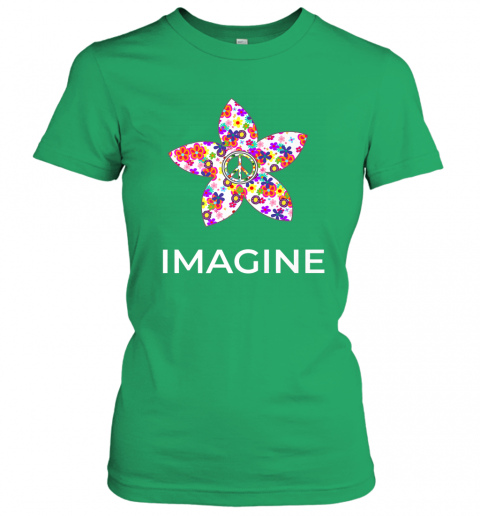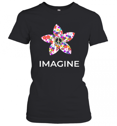 Imagine Flower Peace Sign Hippie 60s 70s Retro Women's T-Shirt