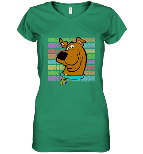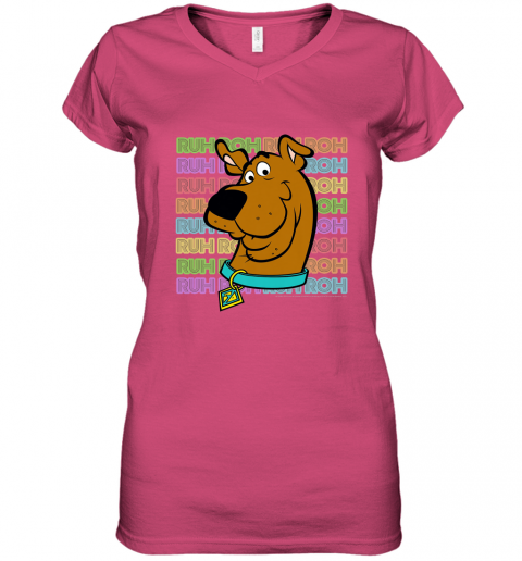 Kids Scooby Doo Ruh Roh Neon Text Stack Women's V-Neck T-Shirt