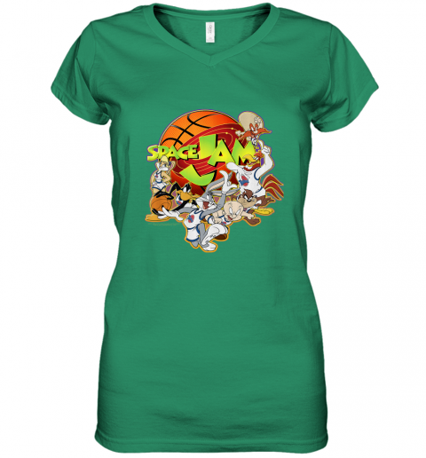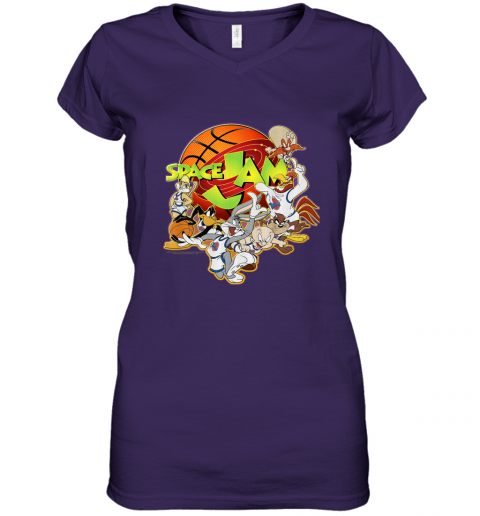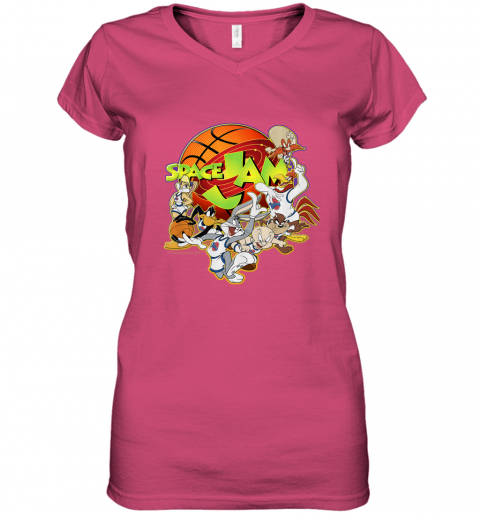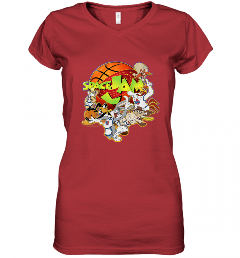 Kids Space Jam Group Shot Basketball Logo Women's V-Neck T-Shirt