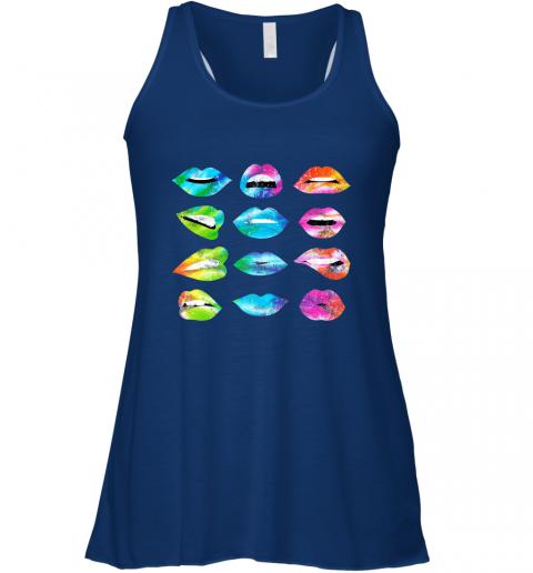 Tie Dye Lip Mood Mouths Bite Tongue Out Smile Smirk Kiss Women's Racerback Tank