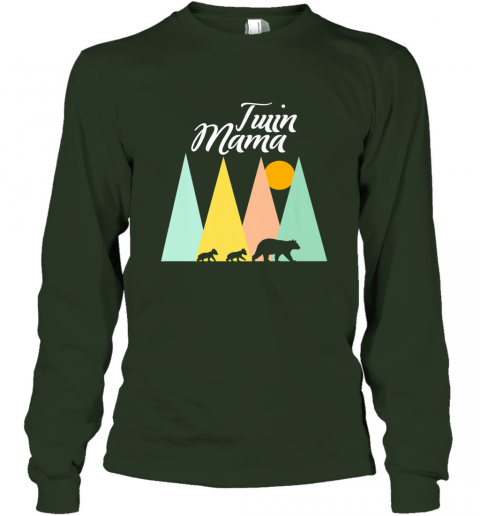 Twin Mom Mama Bear Shirt for Women Camping Bear and Cubs Long Sleeve T-Shirt